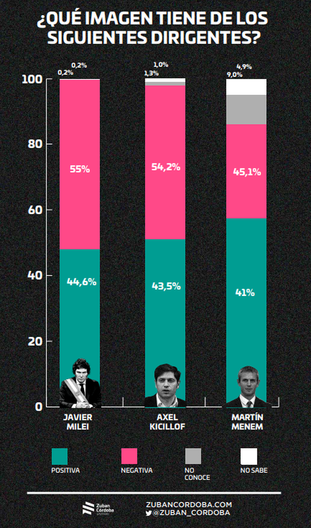 Un nuevo informe de Zuban Córdoba y Asociados detalla el deterioro de la imagen positiva de Javier Milei, junto a su vicepresidenta, Victoria Villarruel, y la ministra de Seguridad, Patricia Bullrich. En mayor medida debido a que el escenario de tercios que le permitió a Milei ser un distinto se desdibujó, volviendo a aquel sistema clásico “con dos polos cada vez más nítidos”.