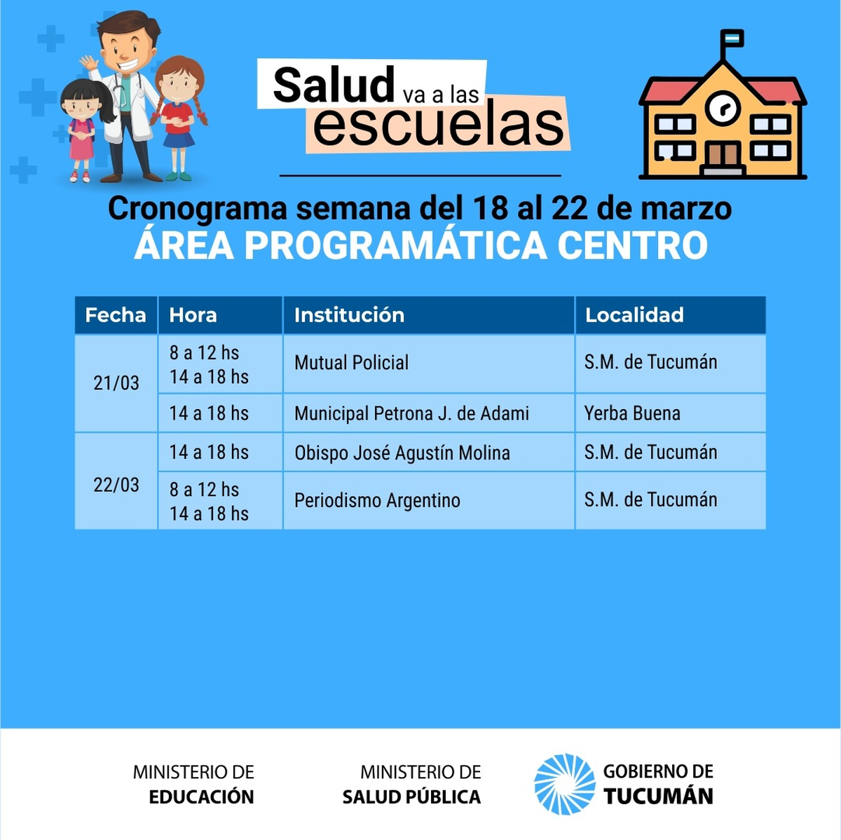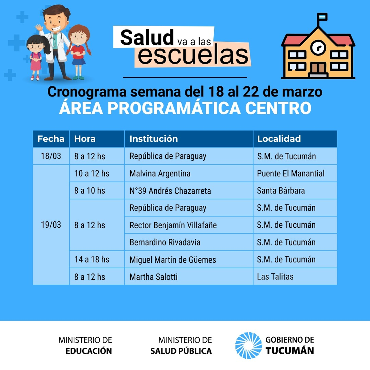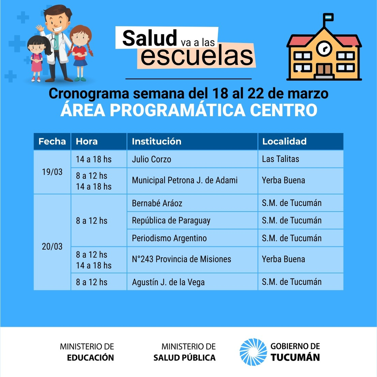 El operativo «La Salud va a la Escuela» visitará todas las escuelas públicas de la Capital y del Interior de la provincia.