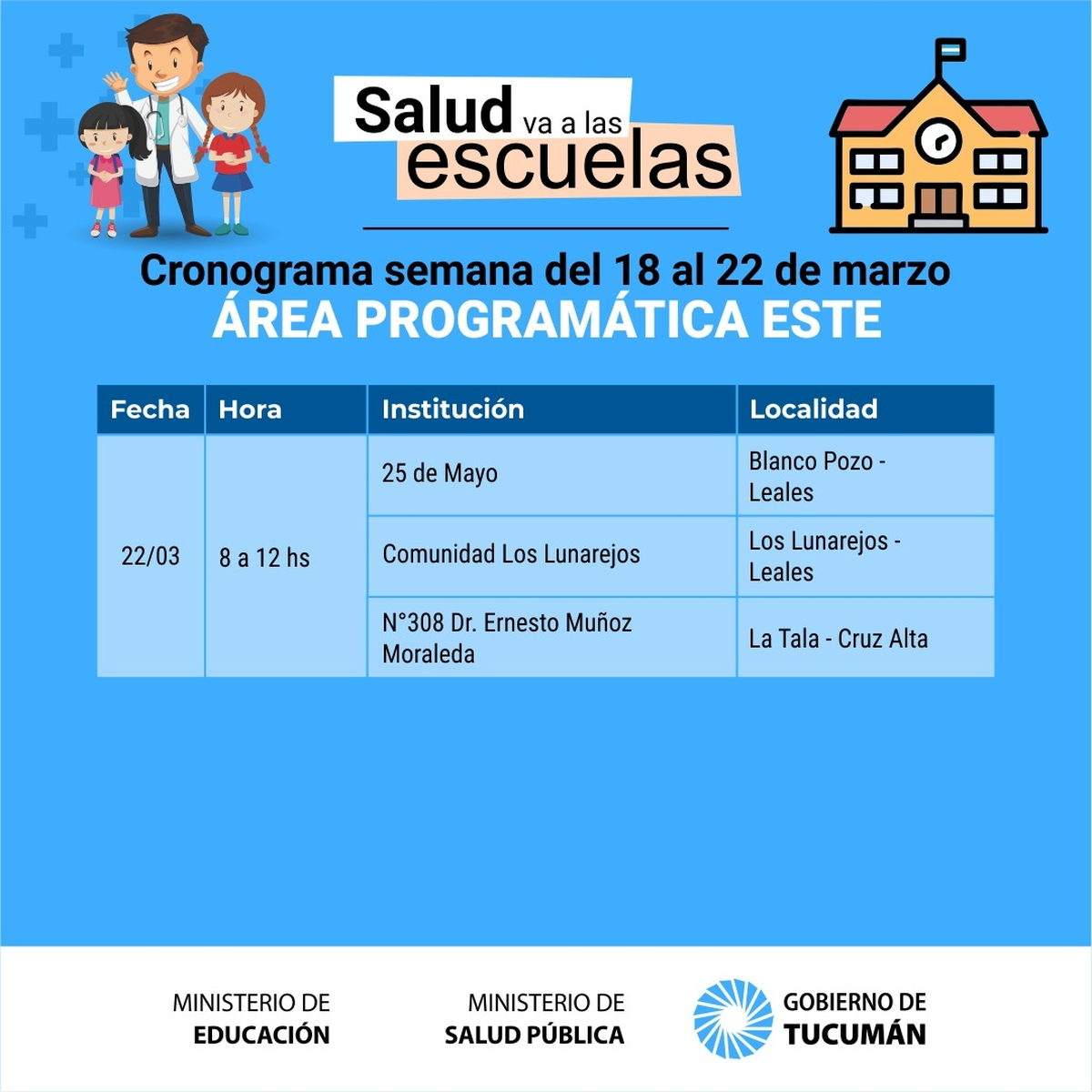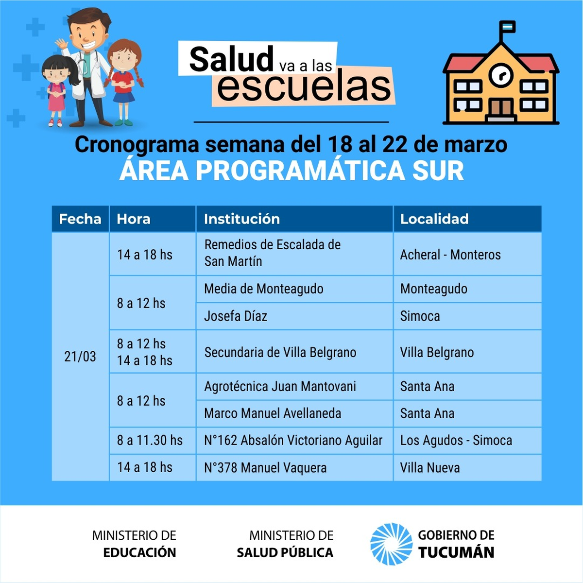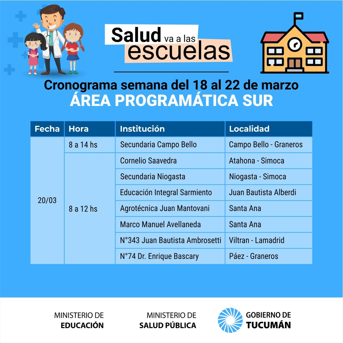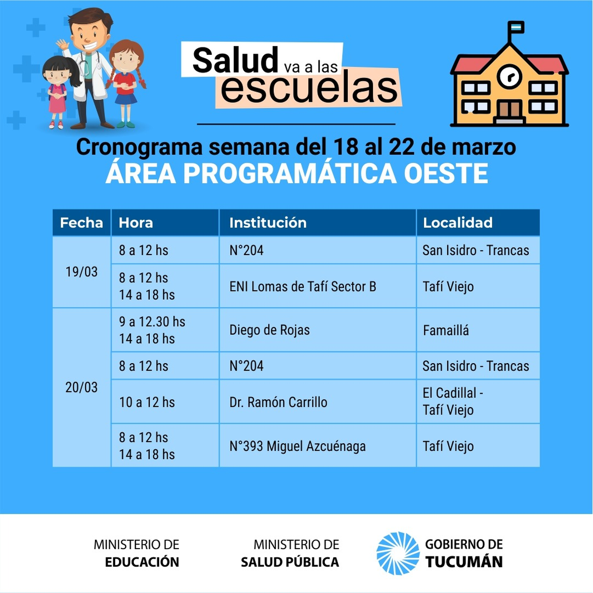 El operativo «La Salud va a la Escuela» visitará todas las escuelas públicas de la Capital y del Interior de la provincia.