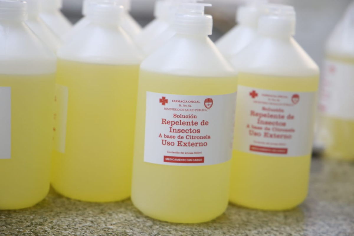 La doctora informó que todos los repelentes producidos en la farmacia oficial son a base de citronela y estos, una vez realizados, son enviados a «todos los receptores de salud de la provincia», como ser CAPS, policlínicas y hospitales.