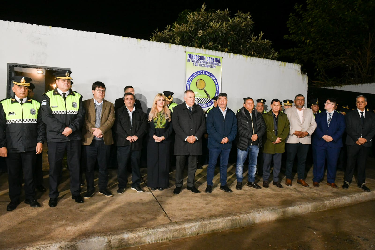 El gobernador, Osvaldo Jaldo, visitó esta tarde la ciudad de Lules, en donde dejó inauguradas dos dependencias de la Policía de Tucumán: Brigada de Investigaciones y DIGEDROP. La primera en La Reducción, y la segunda, en San Isidro de Lules. Durante el acto oficial también se hizo entrega de una camioneta y tres motocicletas para la Brigada.