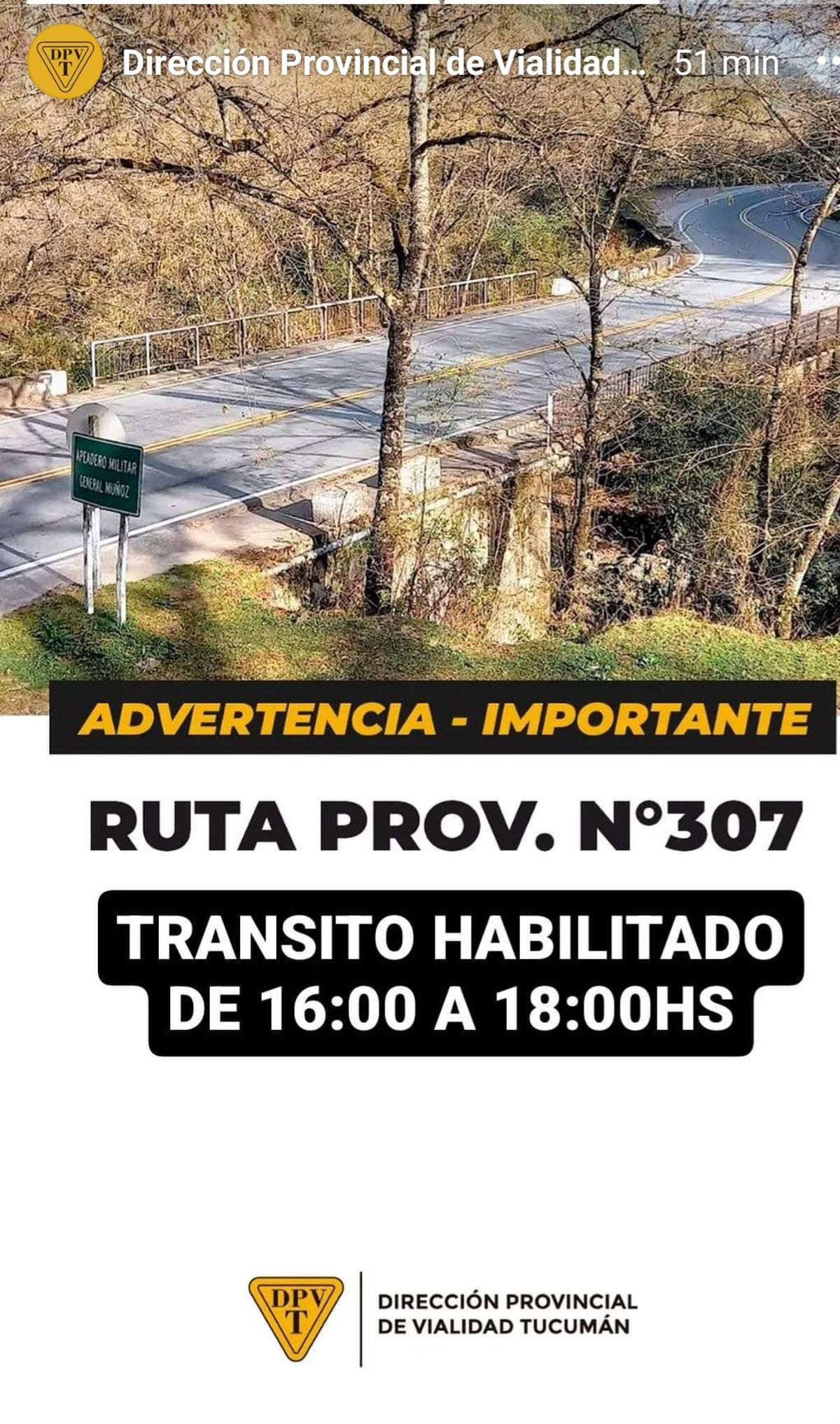 Desde la Dirección Provincial de Vialidad informaron que se llevó cabo un corte preventivo en la ruta 307 por las condiciones del tiempo.