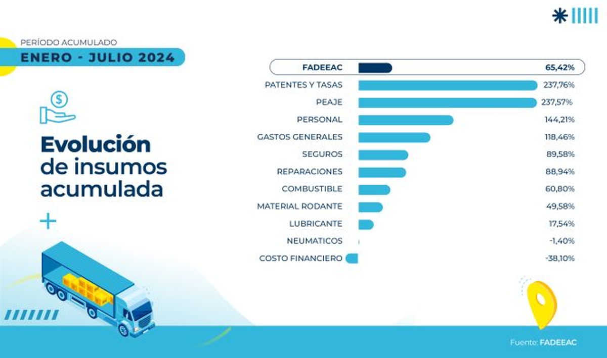 El estudio, realizado por el Departamento de Estudios Económicos y Costos de FADEEAC, mide 11 rubros que impactan directamente en los costos de las empresas de transporte de cargas de todo el país, y es referencia en buena medida para la fijación o ajuste de las tarifas del sector.
