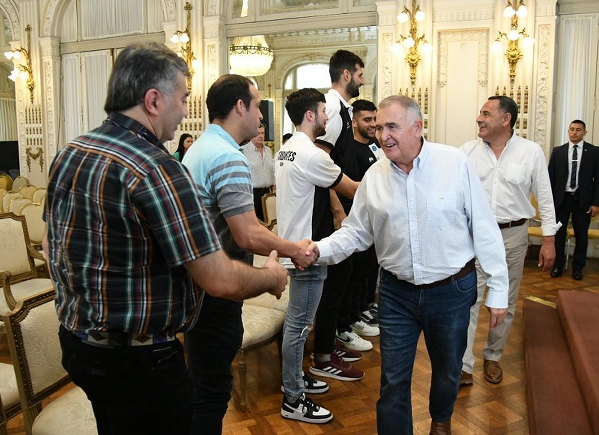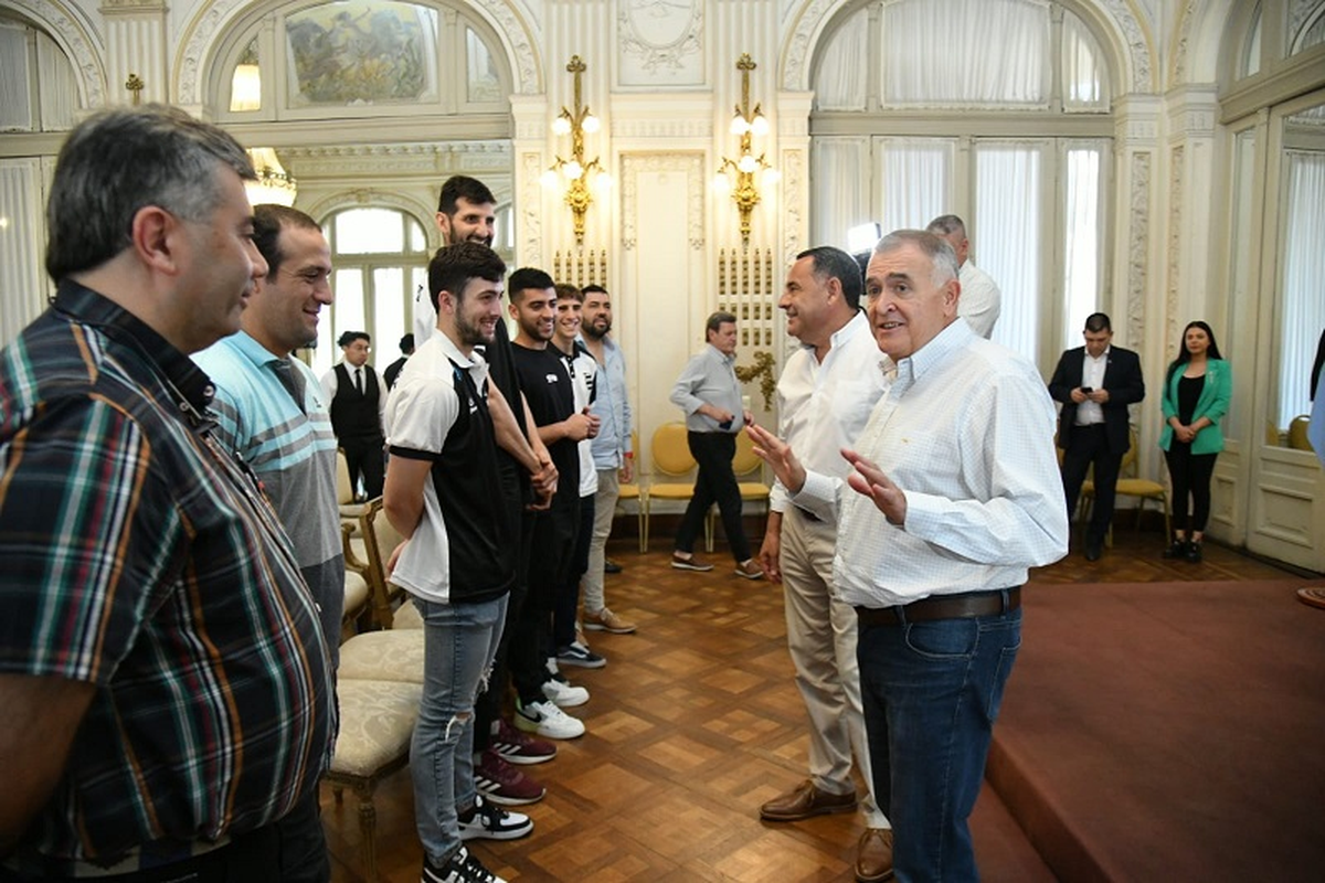 El gobernador, Osvaldo Jaldo, acompañado por el ministro de Gobierno y Justicia, Regino Amado, recibió en Casa de Gobierno a jugadores y directivos del Club Atlético Estudiantes que participan de la Liga Nacional de Básquet de Ascenso.