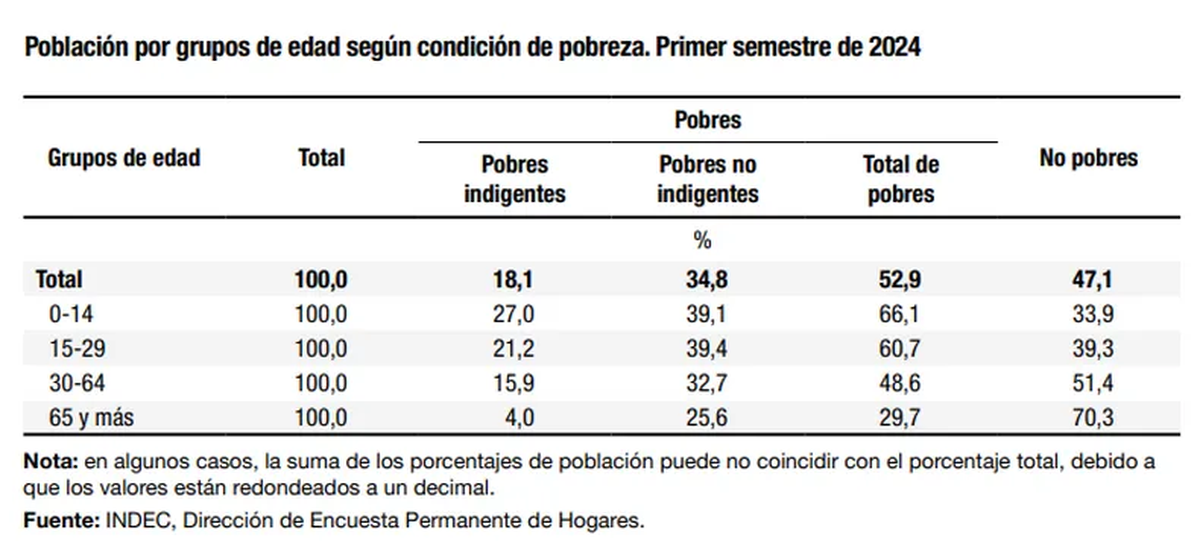 En el primer semestre del 2024, la pobreza alcanzó al 66,1% de los niños y jóvenes entre 0 a 14 años según informó el Instituto Nacional de Estadística y Censos (Indec).