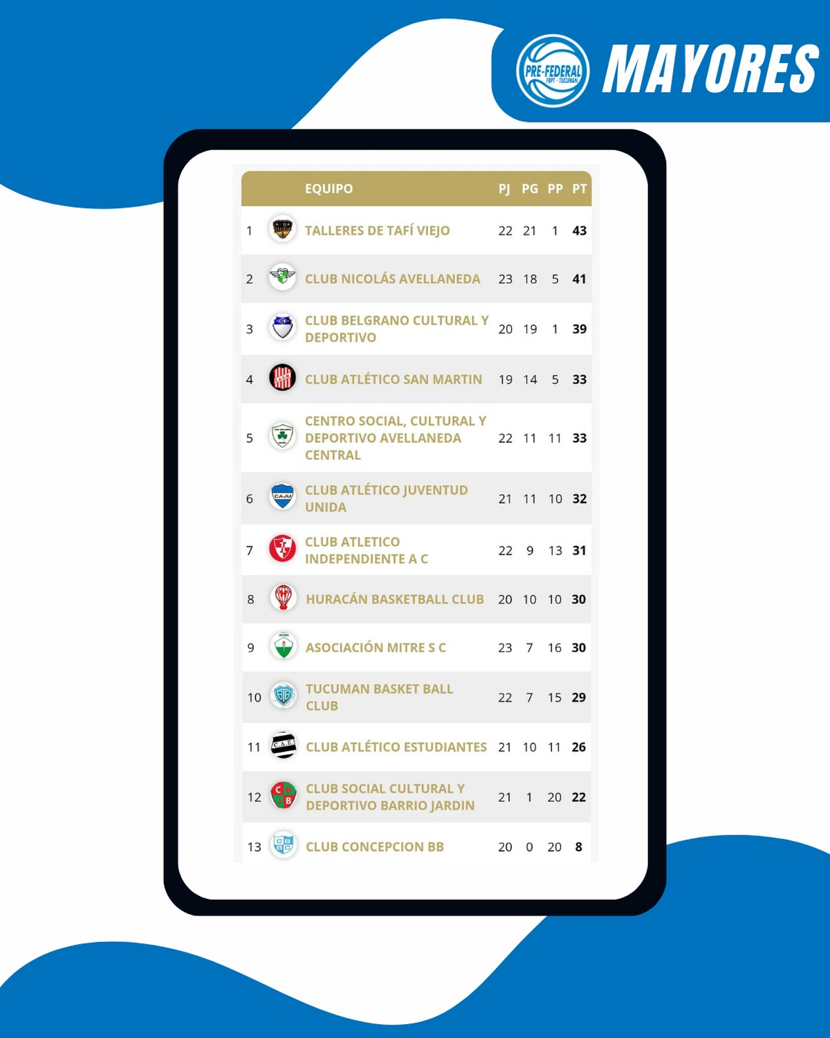 -Belgrano CyD 93- San Martín 86 (A falta de 2’39» para el final, el árbitro Martín Albornoz decretó la suspensión porque pidió el retiro de los hinchas de San Martín y estos se mantuvieron en la tribuna).