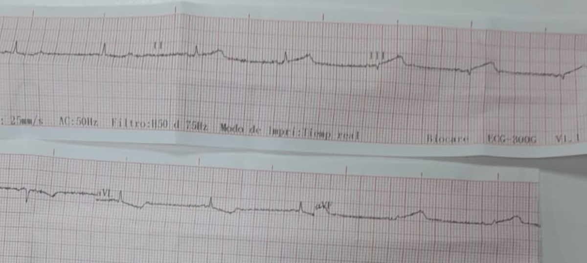 Ante la sospecha de un evento coronario agudo, el equipo médico de guardia realizó un electrocardiograma y se comunicó de inmediato con el cardiólogo coordinador del programa, quien confirmó el diagnóstico de infarto agudo de miocardio de cara inferior.
