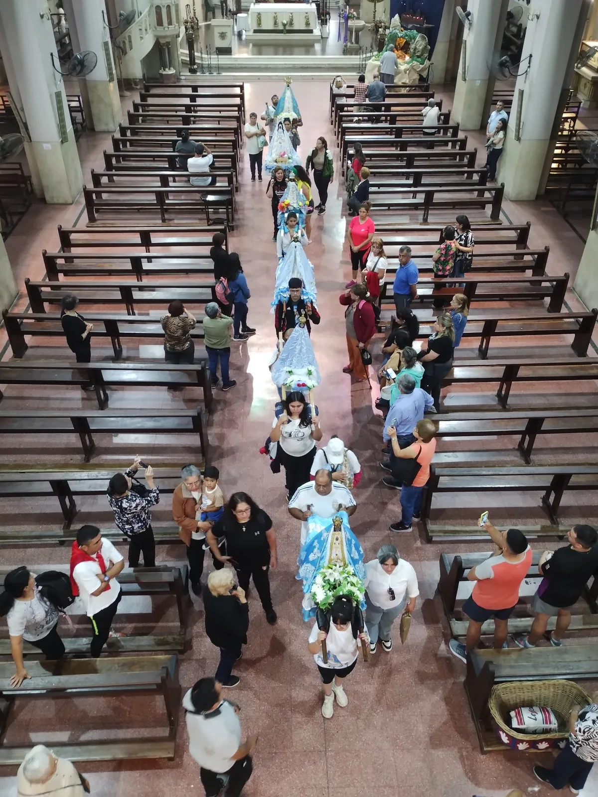 «En la Parroquia de La Merced tenemos dos fechas grandes donde se dan este tipo de manifestaciones de fe. Uno es el 24 de Septiembre y la otra es hoy. Los esperamos con alegría, dejaron sus imágenes, más de 20. Muchos son de Leales, de Colombres, Cruz Alta. La devoción de la gente es muy grande«, detalló el Padre Abel.