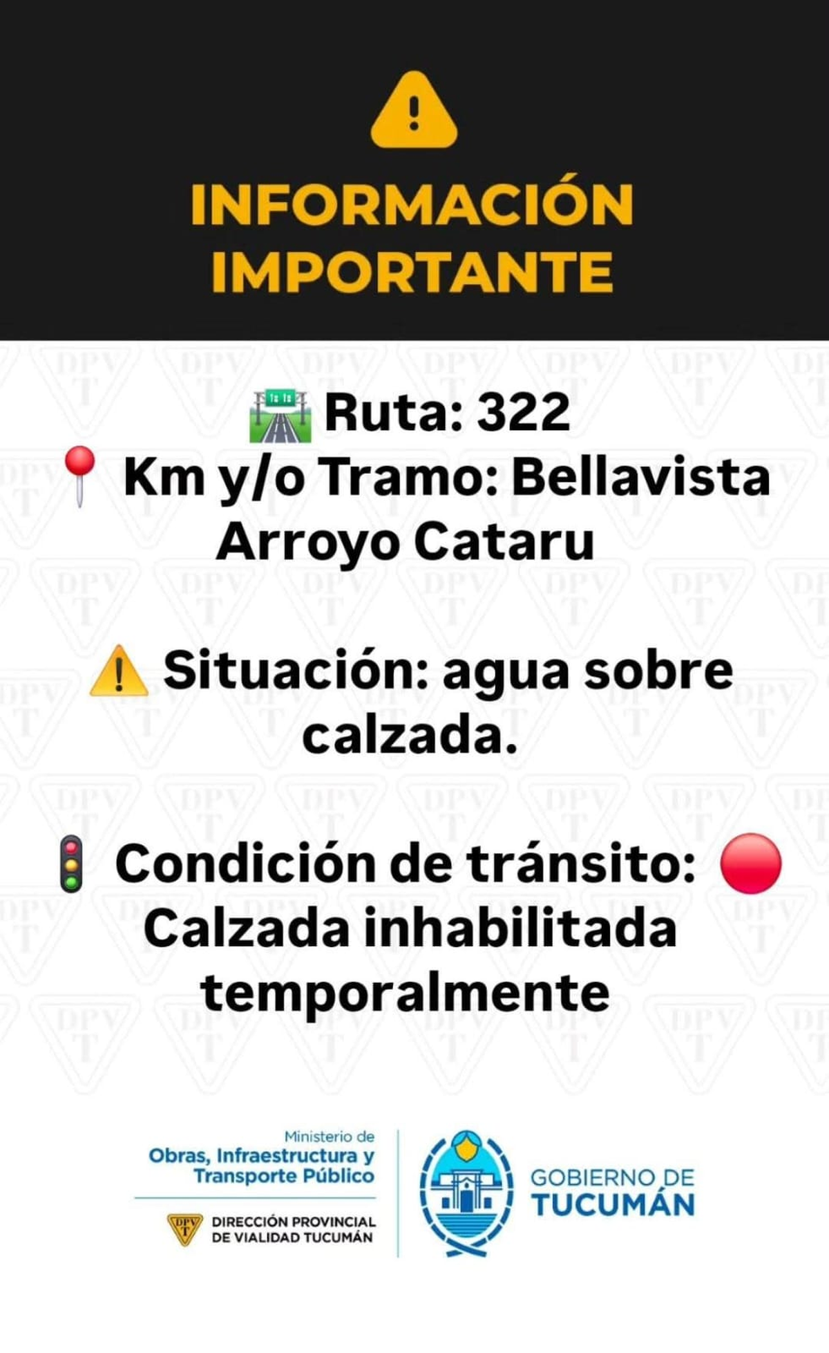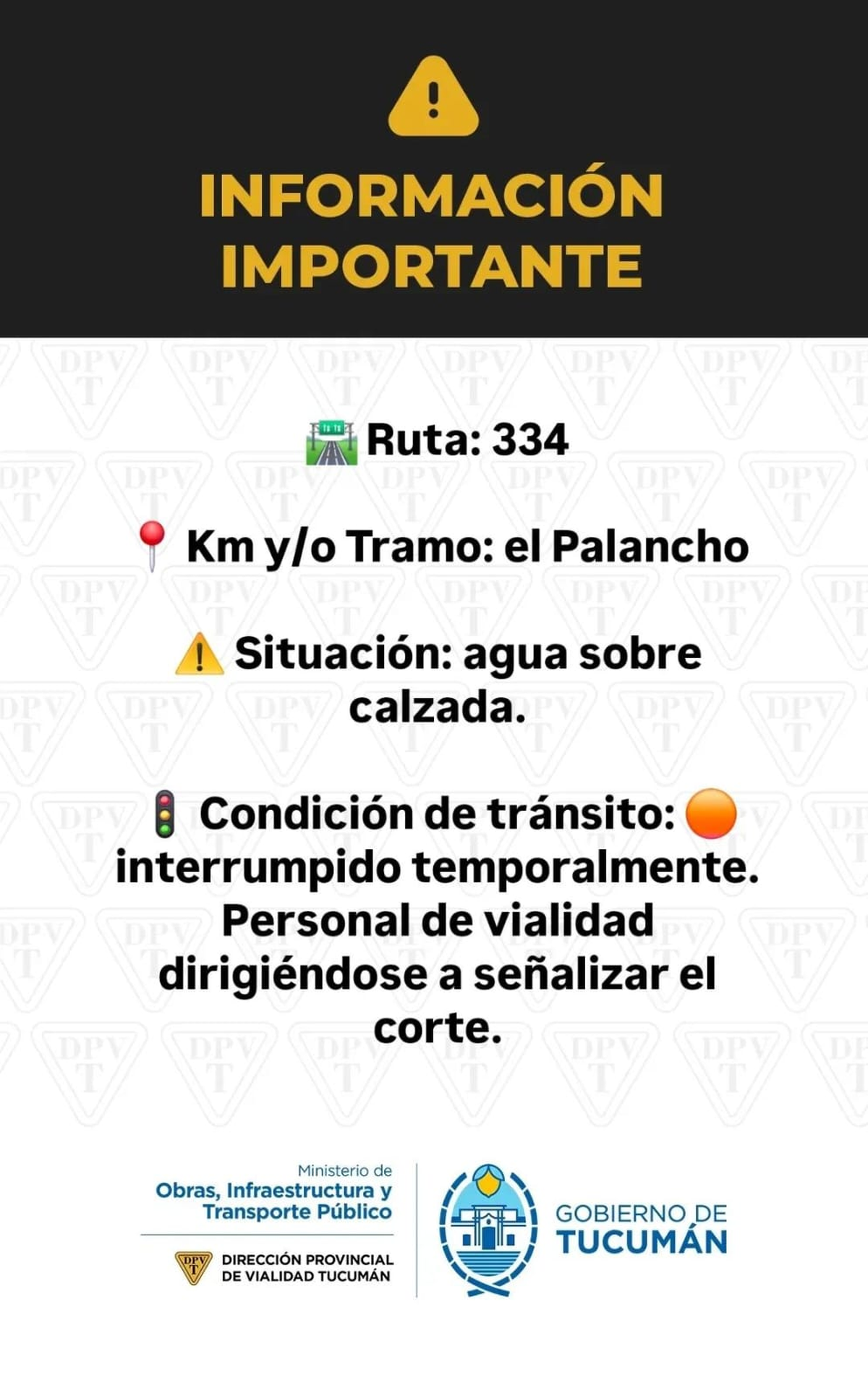 Desde la Dirección Provincial de Vialidad, piden circular con precaución. Tránsito cortado en las rutas 334, 322 y 323.